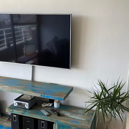 Denna lägenhet har utsikt över havet och erbjuder ett delat kök med kylskåp, ugn och tvättmaskin. Lägenheten erbjuder 2 sovrum. Det finns separat toalett, badkar och dusch för din bekvämlighet.